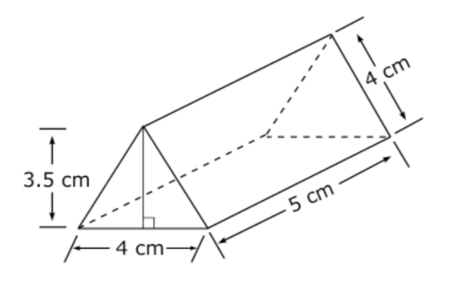 The two ends of this triangular right prism are equilateral triangles. The measurements are given to the nearest tenth of a cm.