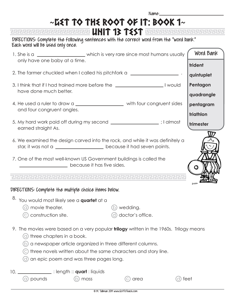 Greek and Latin Roots Unit 13-Tri, Quad/Quar, and Penta/Quint