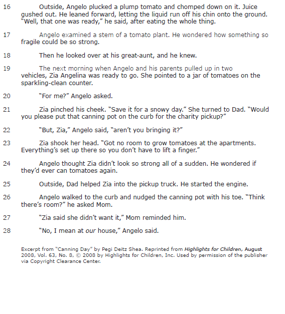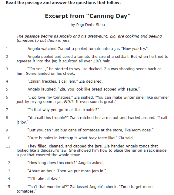 The paragraphs show that Zia needs Angelo's help to can tomatoes.