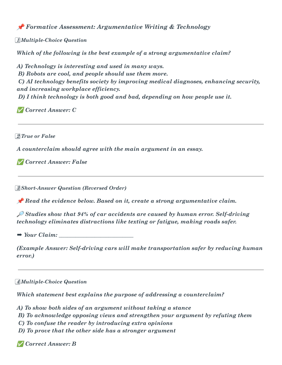 📌 Read the evidence below. Based on it, create a strong argumentative claim.🔍 Studies show that 94% of car accidents are caused by human error. Self-driving technology eliminates distractions like texting or fatigue, making roads safer.➡️ Your Claim: ______________________