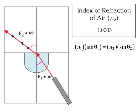 There is an unknown liquid inside of the container. Use Snell's Law to calculate the index of refraction (