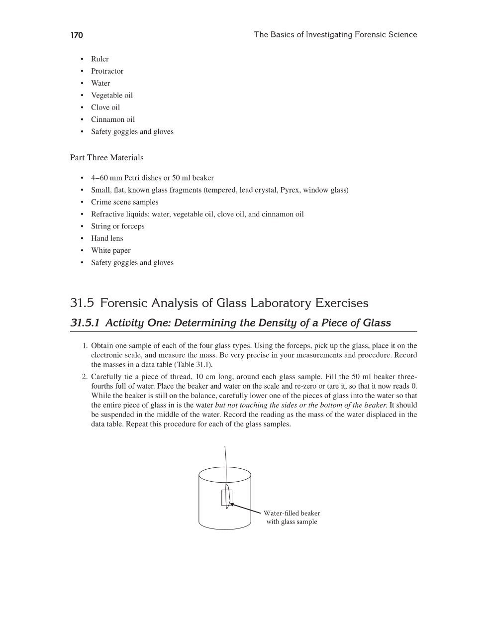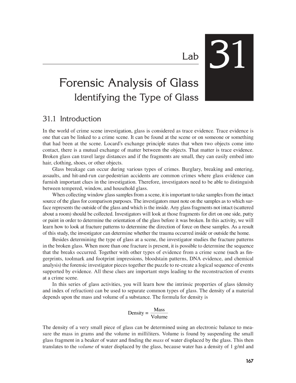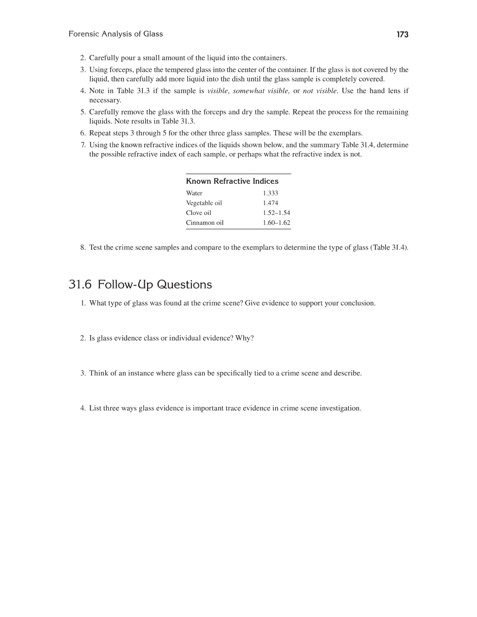 What are the two physical properties of glass that will help in the determination of the type of glass found at a crime scene?