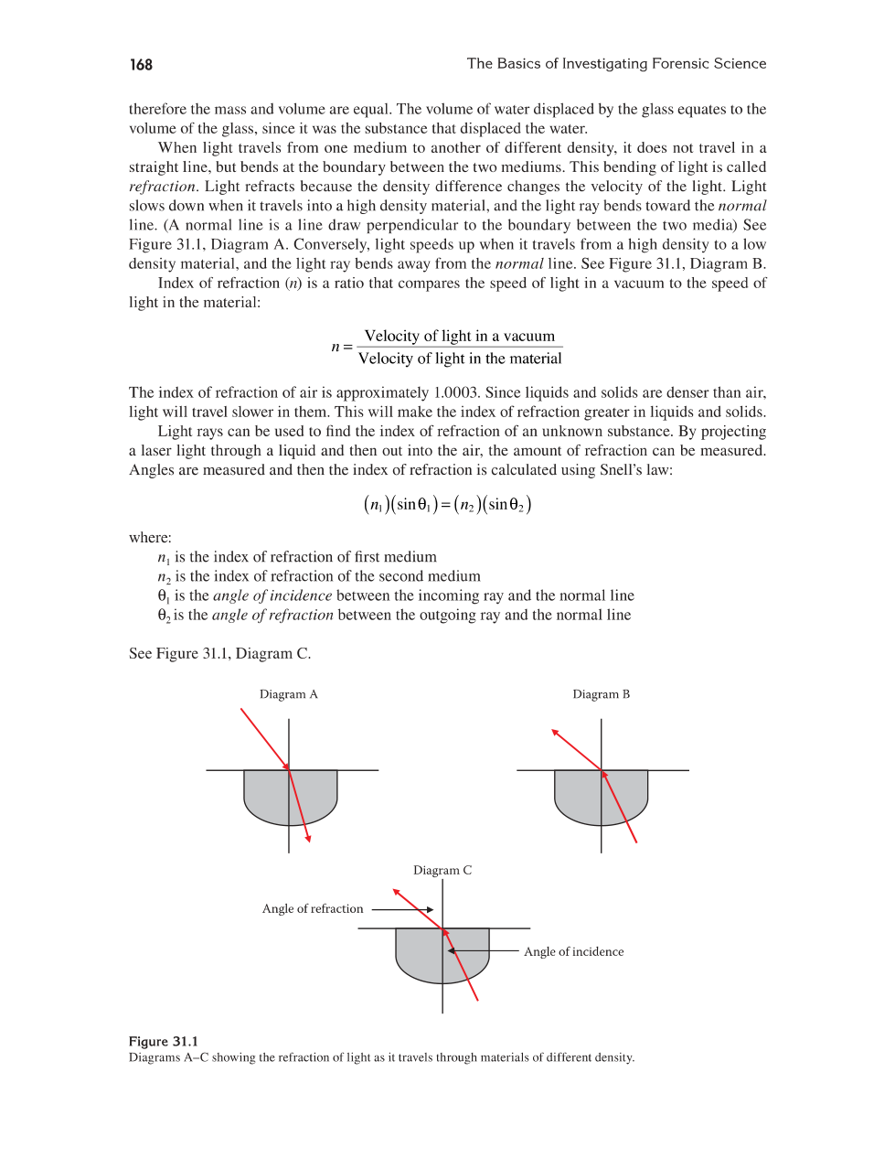 What happens to light when it travels from on medium to another of different density?