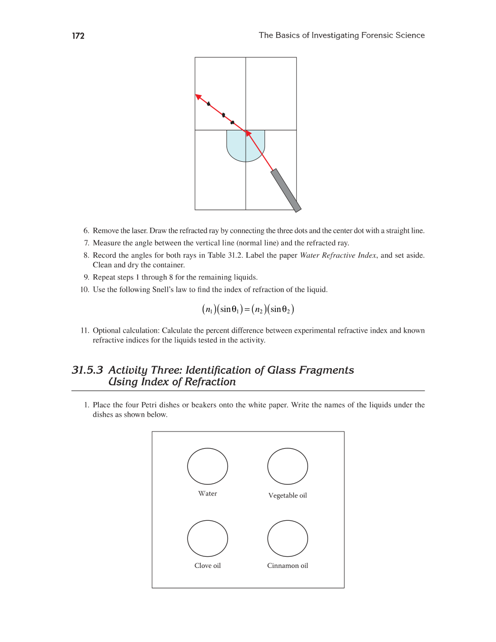 There is an unknown liquid inside of the container. Use Snell's Law to calculate the index of refraction (n1) of the unknown liquid!