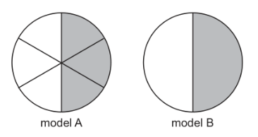Each model shown is shaded to represent a fraction.