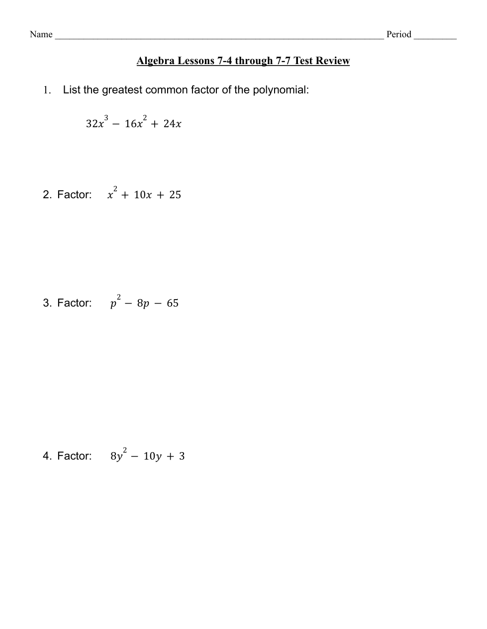 List the Greatest Common Factor of the Polynomial