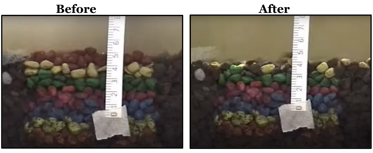 In the "pebble tank" video we watched in class, several layers of pebbles were removed due to erosion. Some were replaced by other pebbles. Drag and drop the correct labels in the image below.