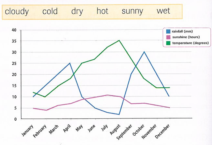 - August is the _______ month, when the average daily temperature is 35 degrees.