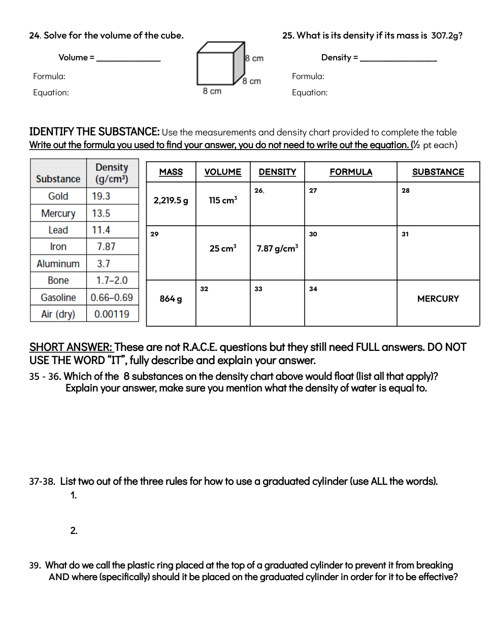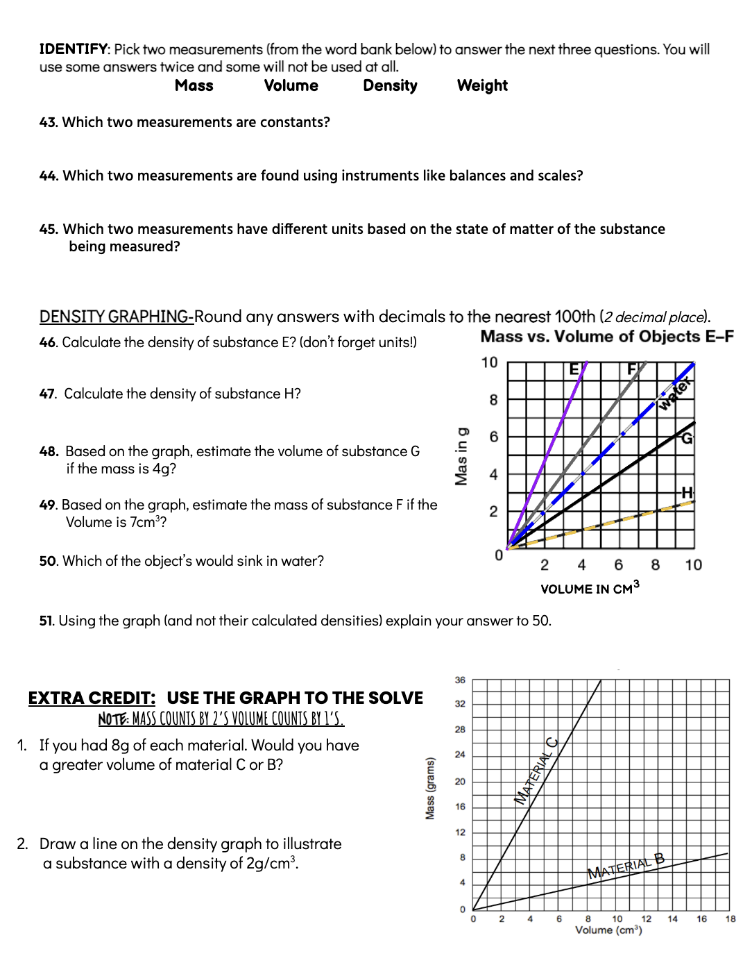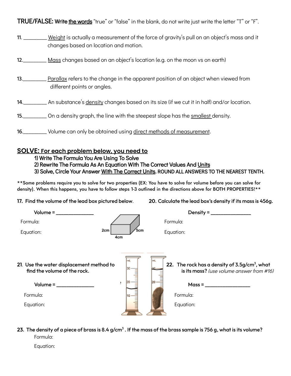 Density has to be a decimal - round to the nearest 100th when needed. (2 decimal places)