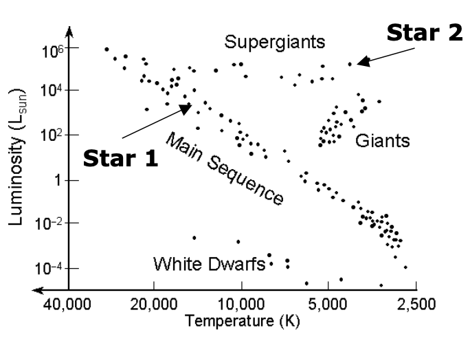 Based on the diagram, which statement about Star 1 and Star 2 is correct?