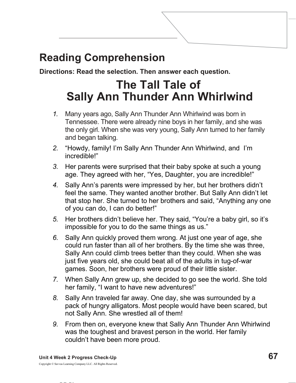 This quotation “I’m Sally Ann Thunder Ann Whirlwind, and I’m incredible!” in paragraph 2 supports the theme that