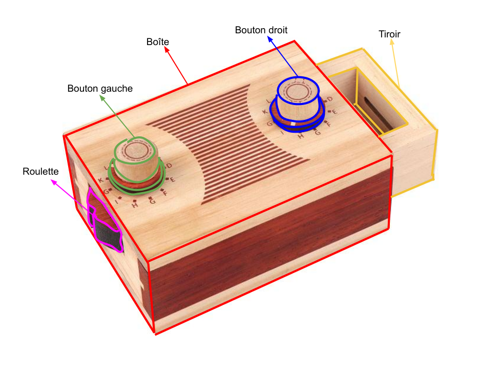 Le bouton gauche est collé sur une tige servant de serrure pour le Puzzle radio. La liaison entre ces deux pièces est _______ _______