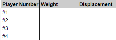 Player Weight Speed (meters in 10 seconds)