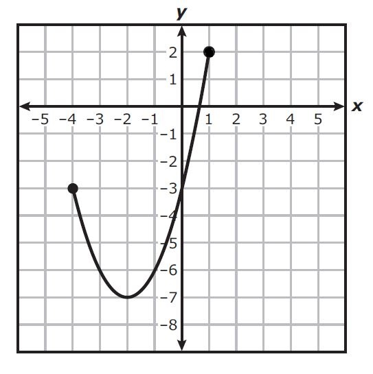 Complete the sentences to create a true statement about the domain and the range of this function. Move the correct answer to each box. Not all answers will be used.