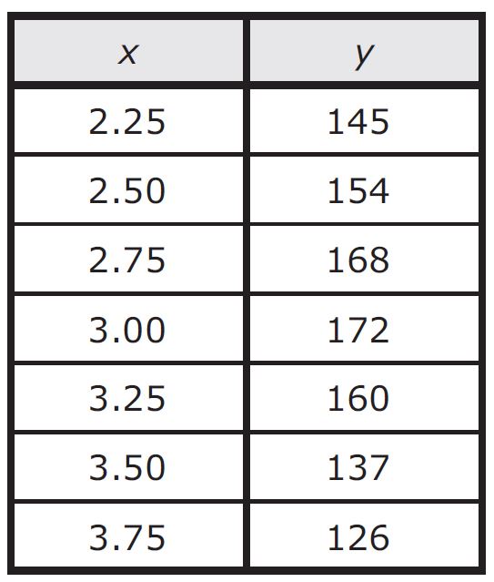 The table shows the weekly profit in dollars earned from the sale of pastries at seven different prices. The data can be modeled by a quadratic function.