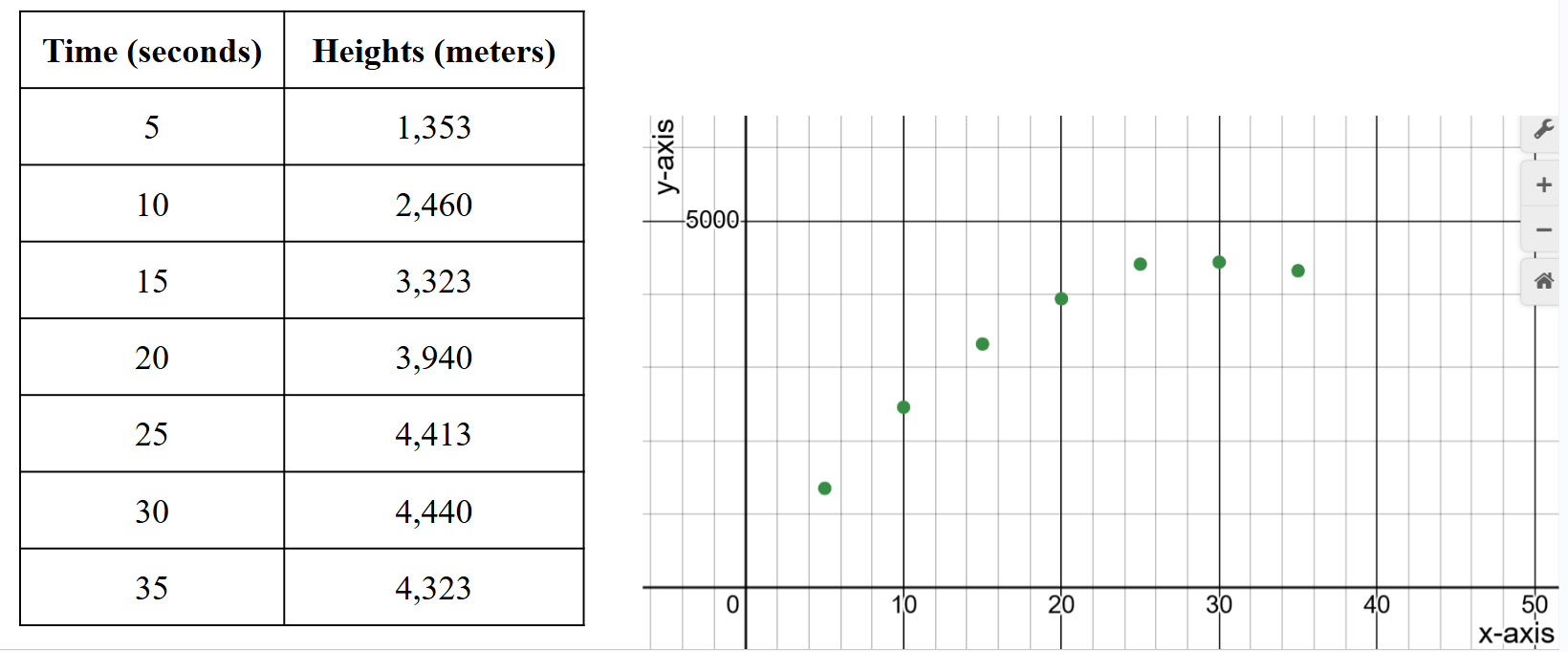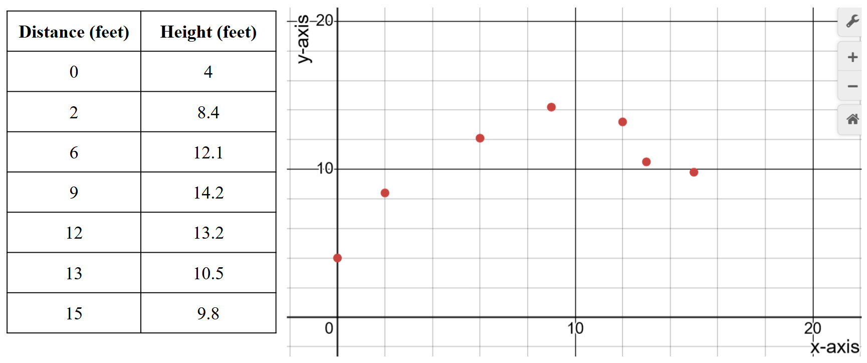 The data below shows the height of a ball after it has traveled a certain distance in the air.