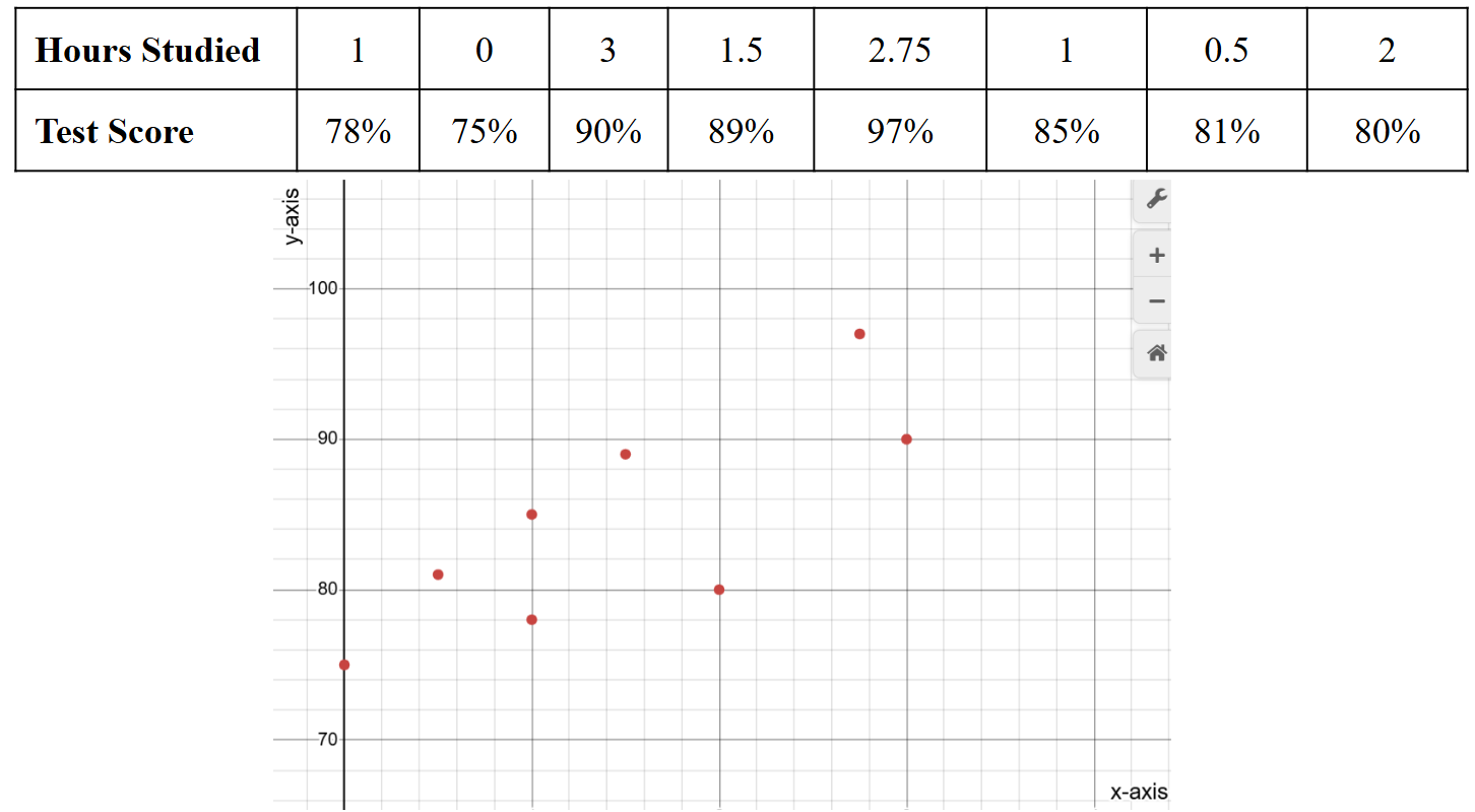The table below gives the amount of time students in a class studied for a test and their scores.