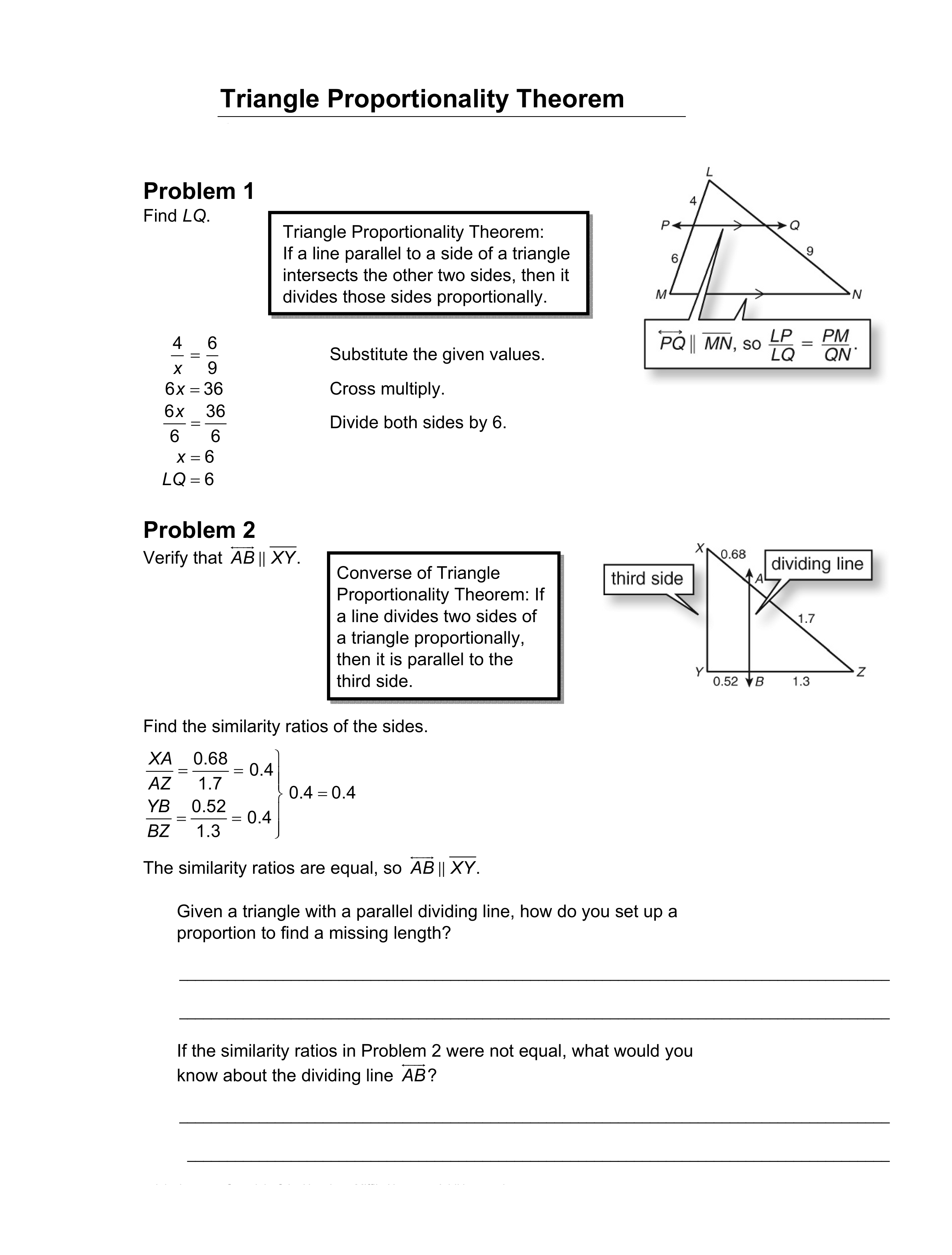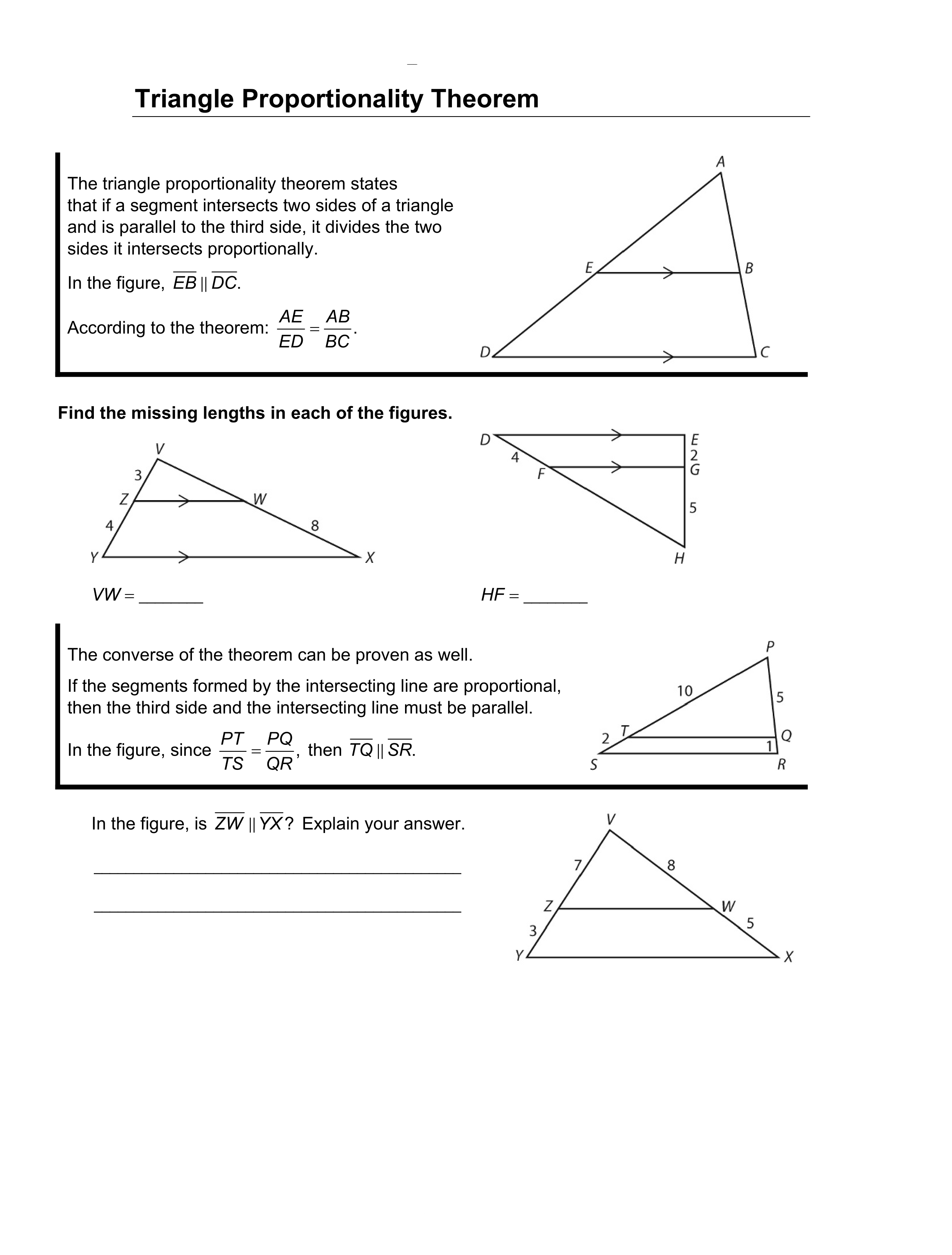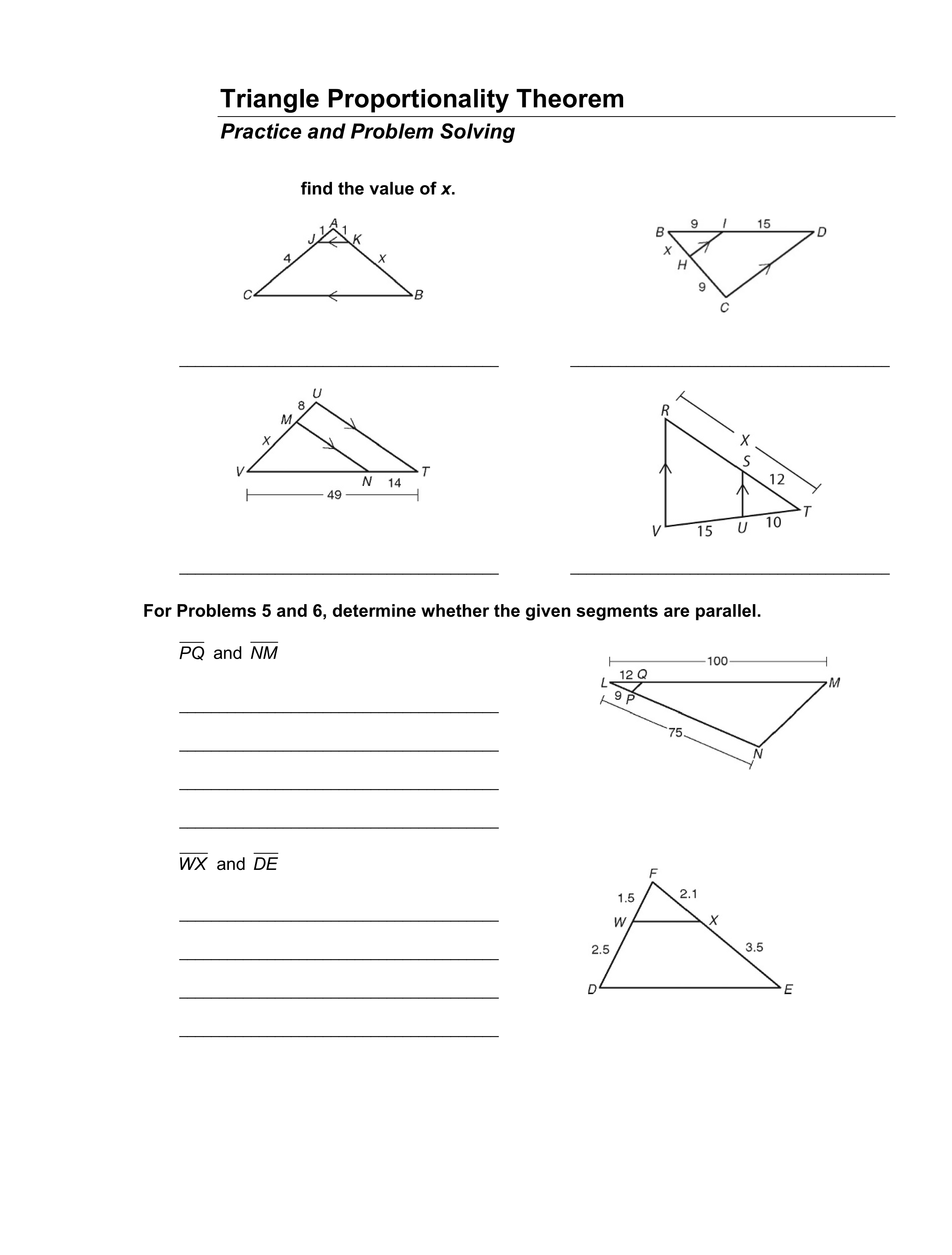 Use the Thereom of Triangle Proportionality to prove the given segments are parallel.