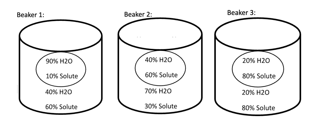 Beaker 1: Water will move ___ the cell. | arrow_right_alt | out of |