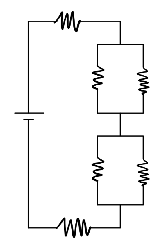 Categorize each of the circuits as either a series circuit, a parallel circuit or a more complicated circuit (not a simple series or parallel circuit).