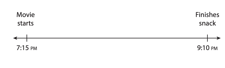 Leonel watched a movie and ate a snack before going to bed on Monday. He started watching the movie at 7:15pm, and it was 1 1/2 hours long. Leonel finishes his snack at 9:10pm. How long did Leonel take to eat his snack?