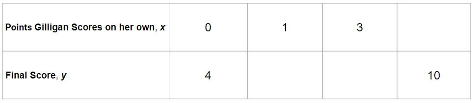 Gillian is playing with a friend. Gillian receives 4 points to start each round of the game, and her final score for the round is represented by the equation, y=x+4, where x is the number of points Gillian scores on her own, and y is the final score.
