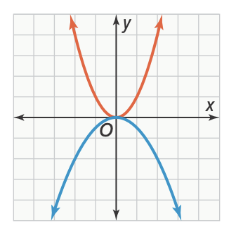 The graph of the parent quadratic function f(x) = x^2 and that of a second function of the form g(x) = ax^2 are shown. What conclusion can you make about the value of a in the equation of the second function?