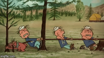 Charlie Brown's team pulls with a force of 78 Newtons ➡️ while the blue team pulls with a force of 100 Newtons ⬅️.