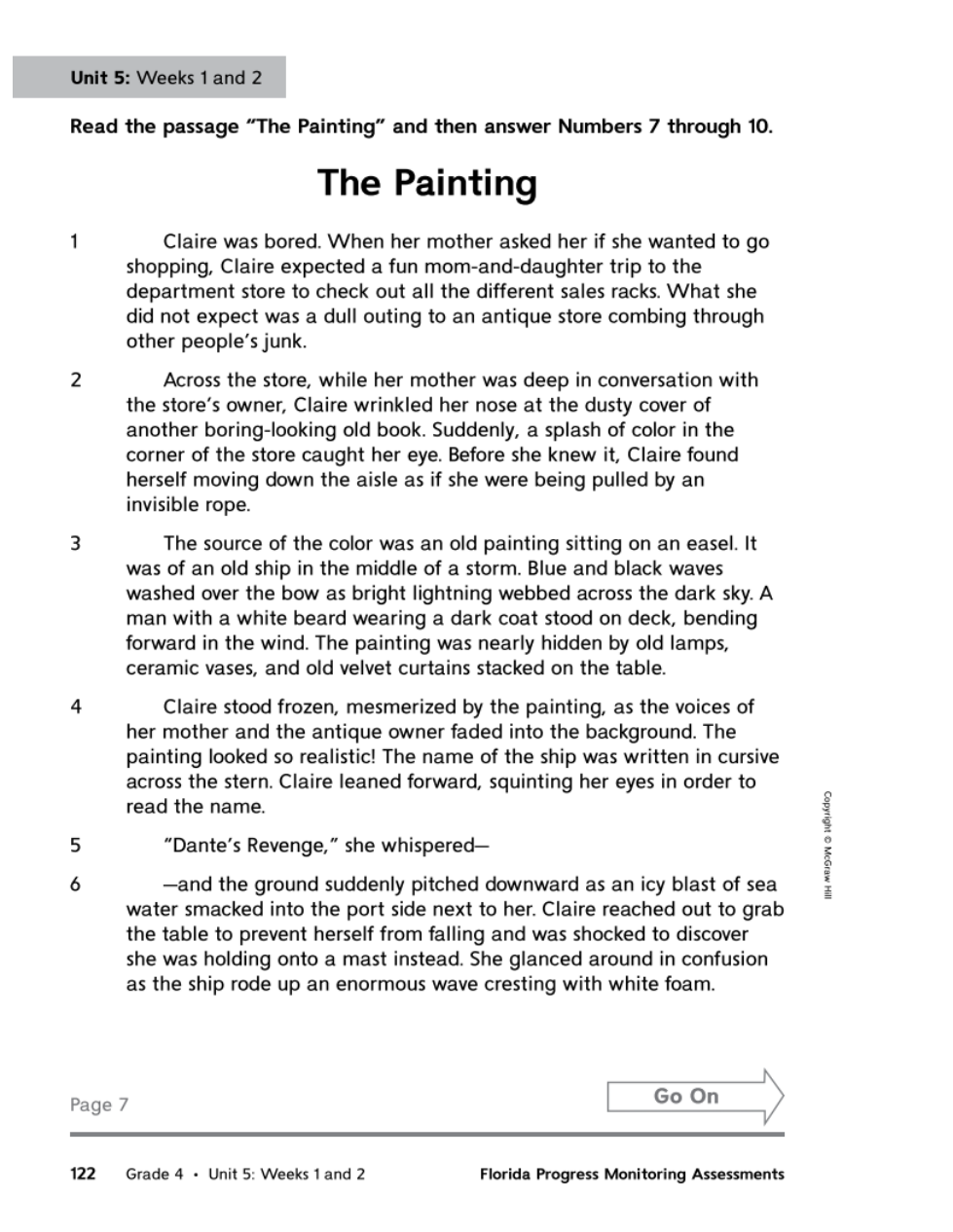 "Claire stood frozen, mesmerized by the painting, as the voices of her and the antique owner faded into the background." (paragraph 4)