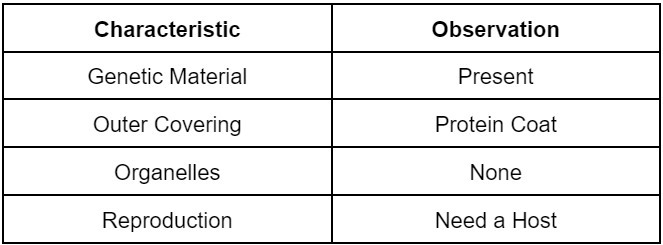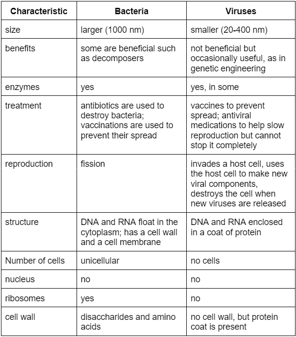 Some information about bacteria and viruses is arranged in the table below.