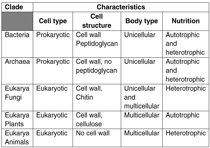 Based on its characteristics and the information in the table above, construct an argument to identify the appropriate clade for its classification.