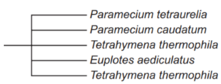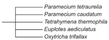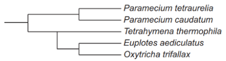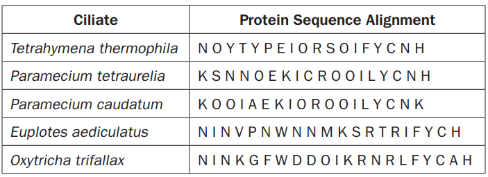 Portions of the protein sequence alignments for a group of ciliates are shown.