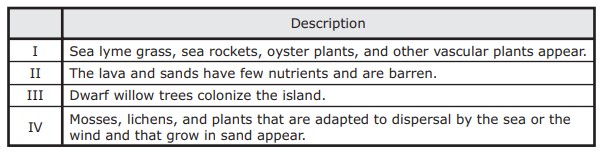 Which of these lists the descriptions in the correct order of ecological succession on Surtsey?