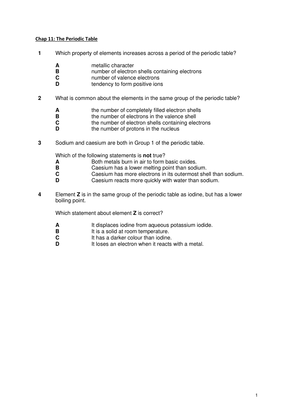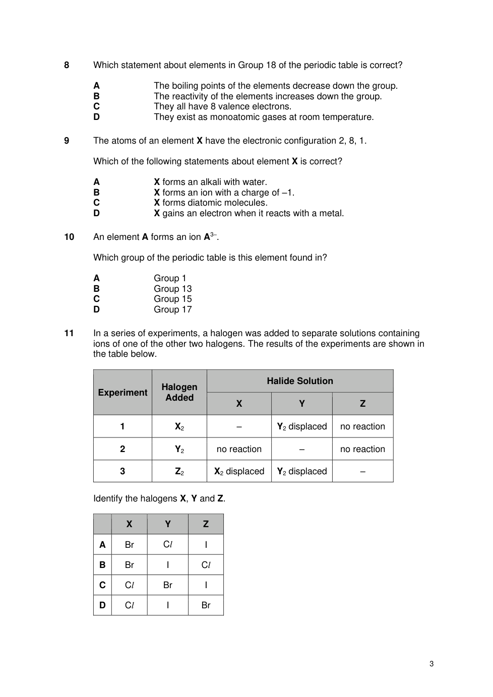 Periodic Table Trends, Group 1, 17 and 18 properties