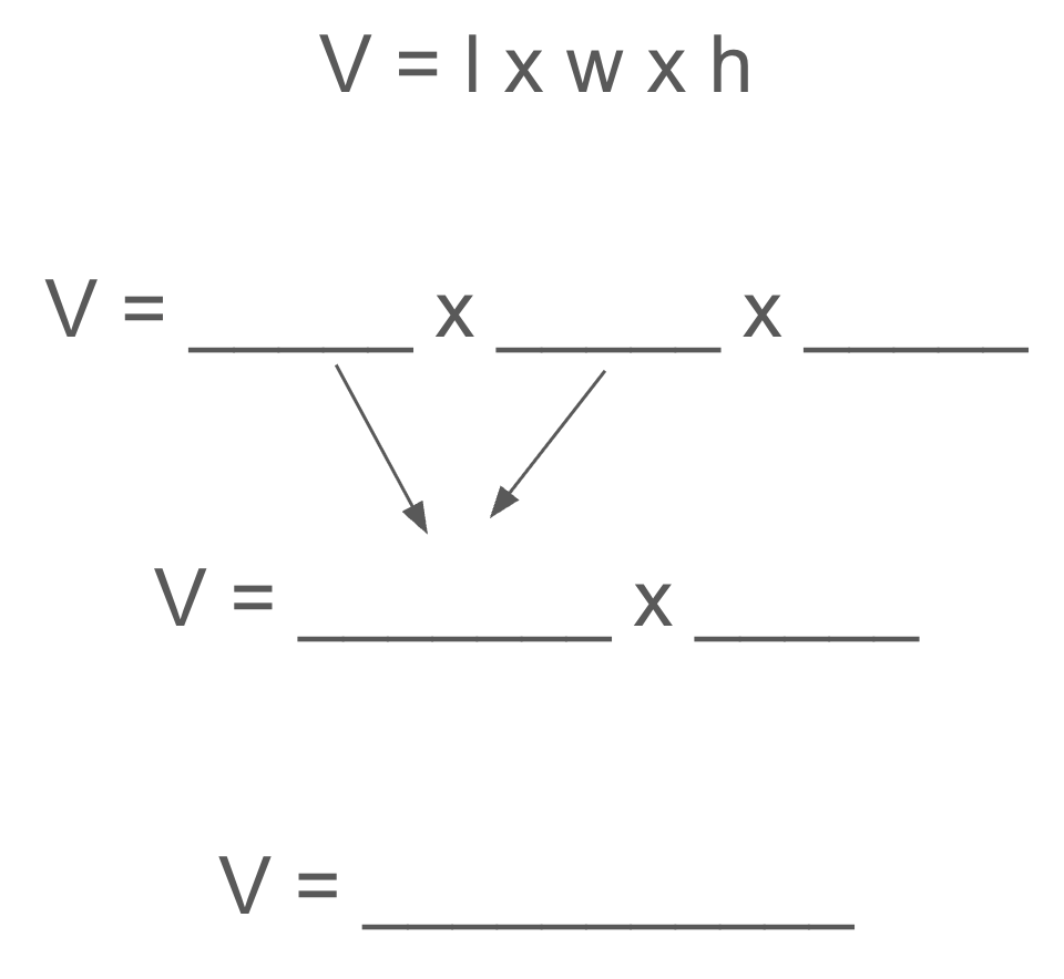 Drag and drop the correct values into the equation to find the volume of the given rectangular prism.