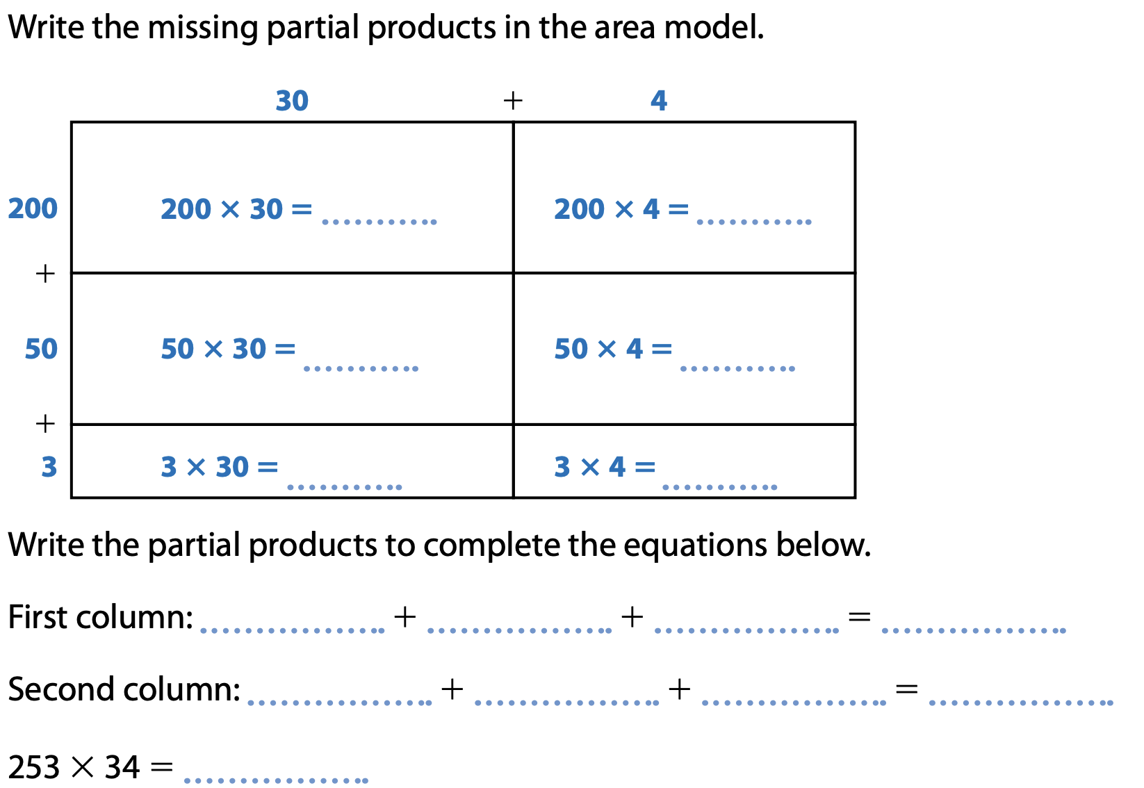Drag and drop the correct values onto the image below to find the product of 253 x 34.