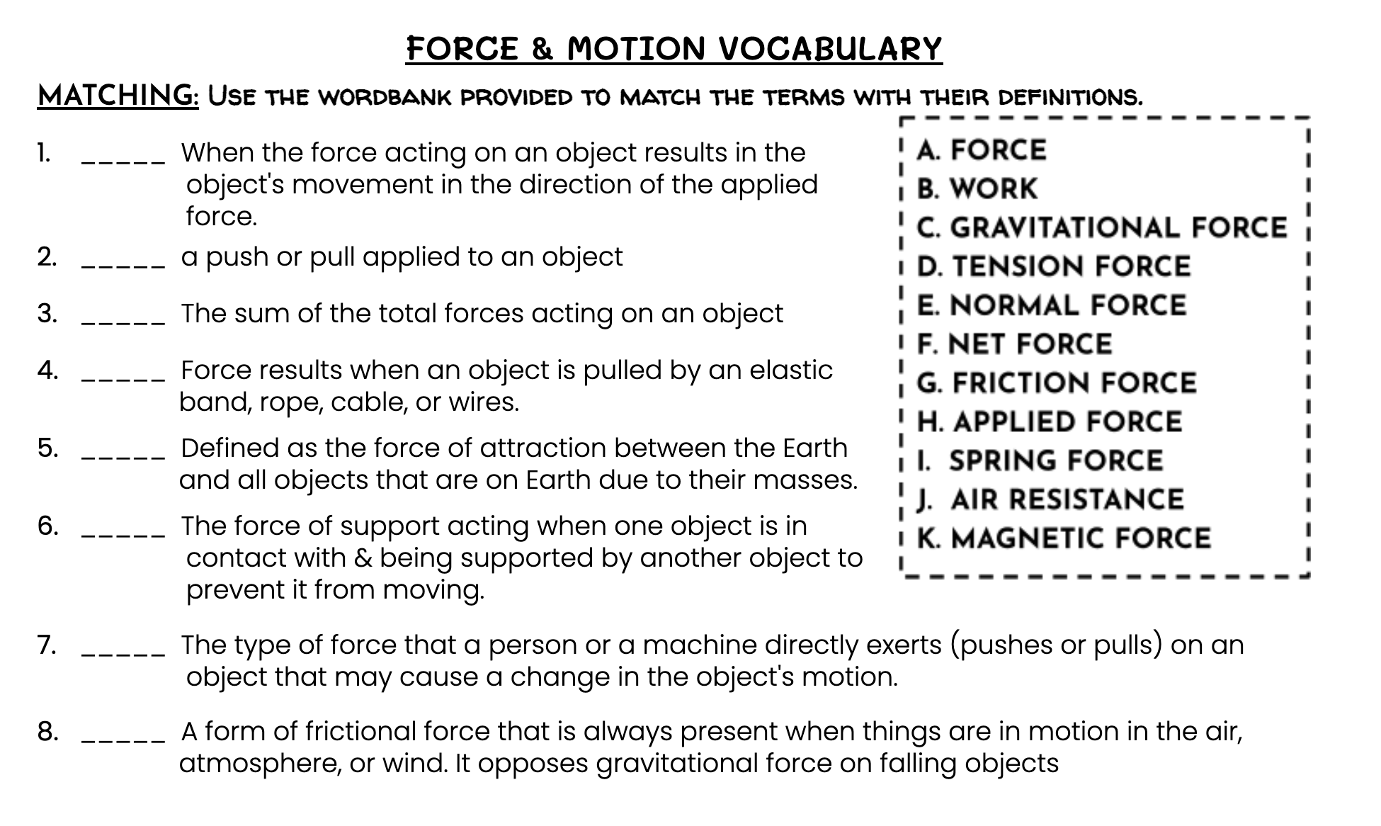 YOU WILL NOT USE EVERY TERM. NO TERM WILL BE USED TWICE.