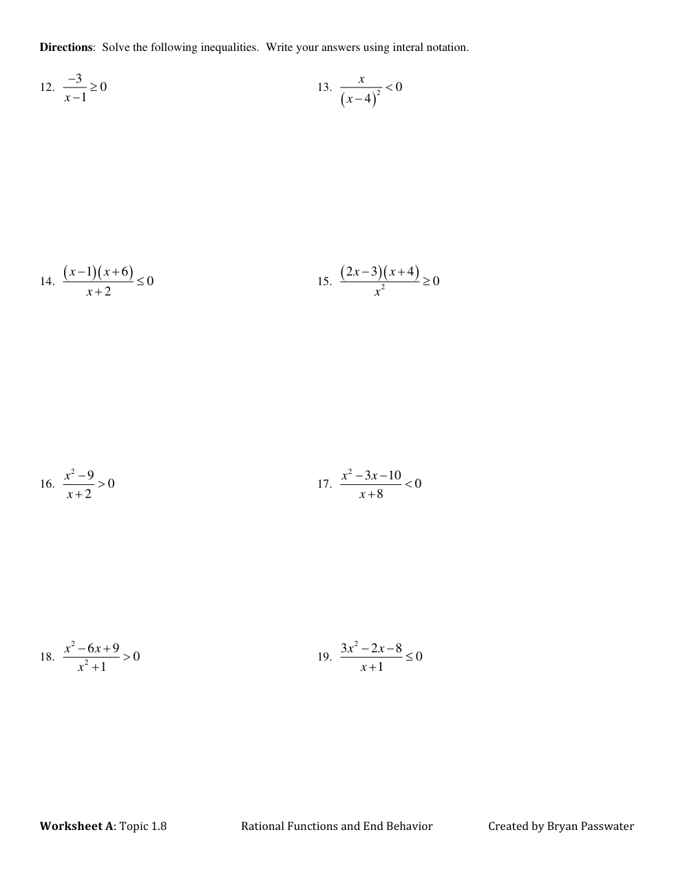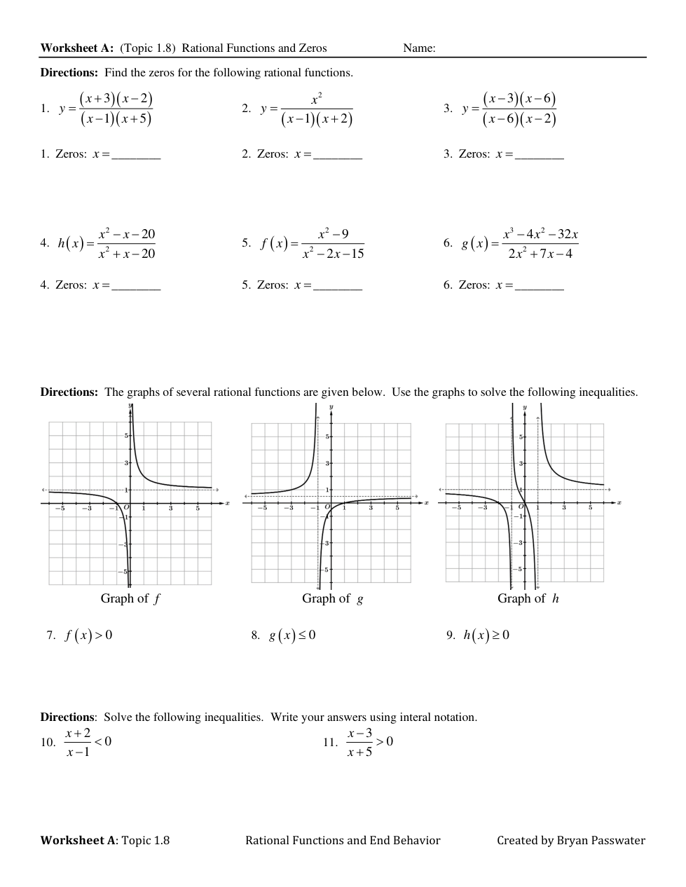 WS A_Topic 1.8 Rational Functions and Zeros