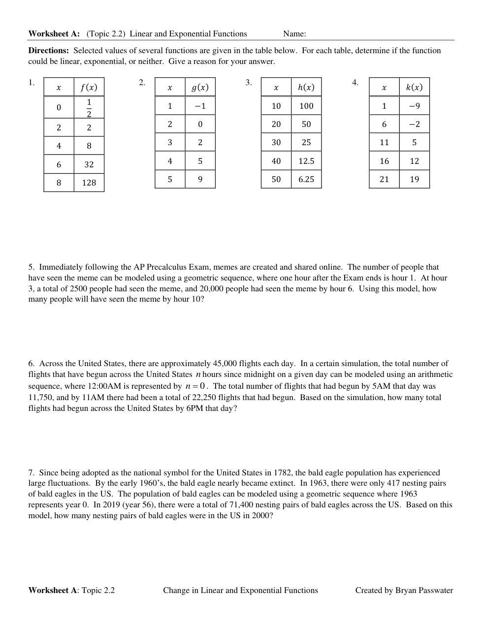 WSA(topic 2.2) Linear and Exponential Functions