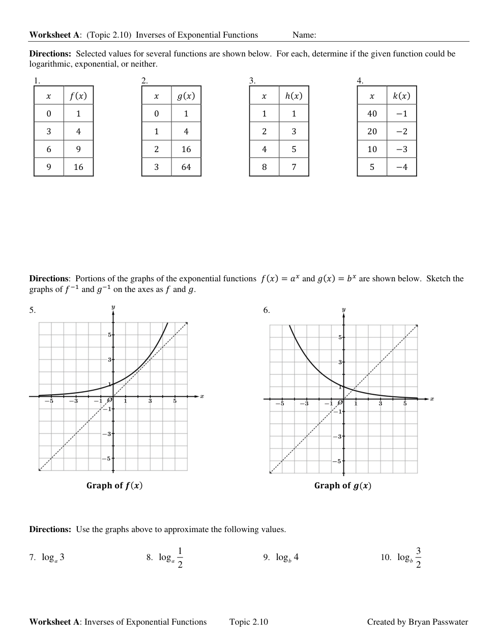 Topic 2.10 WS inverses of exponential functions