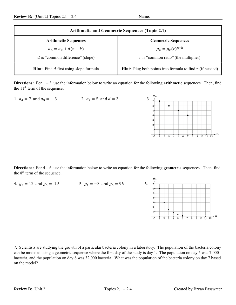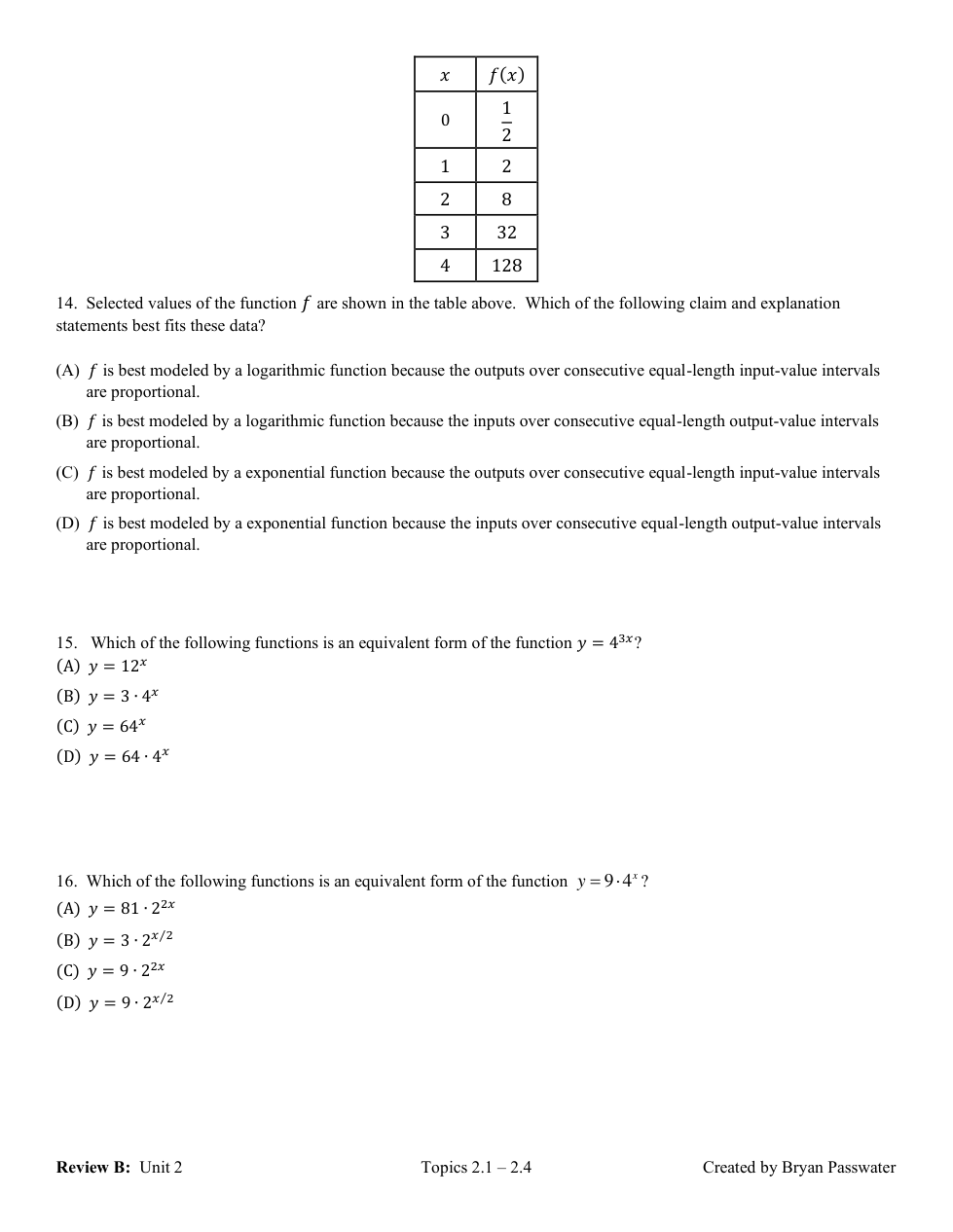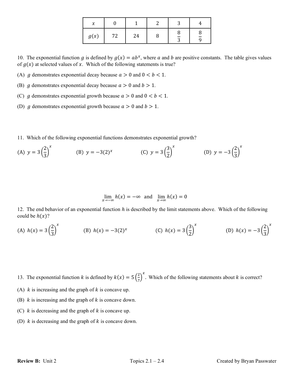 REVIEW of Topics 2.1-2.4