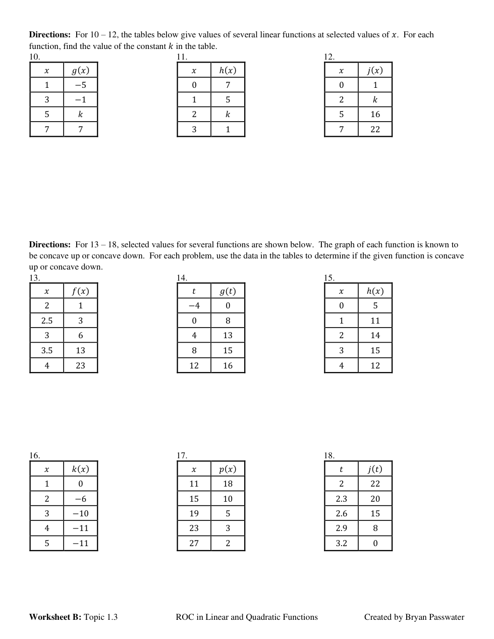 EXPLAIN VERY SPECIFICALLY how you can tell from a set of data points if a function is concave up, concave down, or neither. Use a specific example of each situation from this homework assignment in your explanation. I will grade this STRICTLY and this question is worth 10 points.
