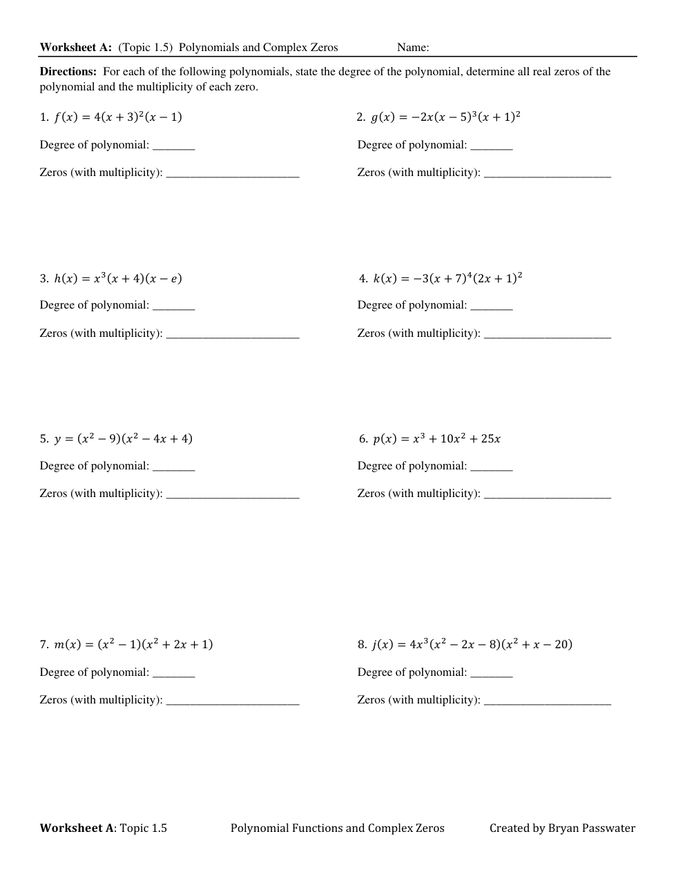 WSA_ Topic 1.5 (Polynomials & Complex Zeros)