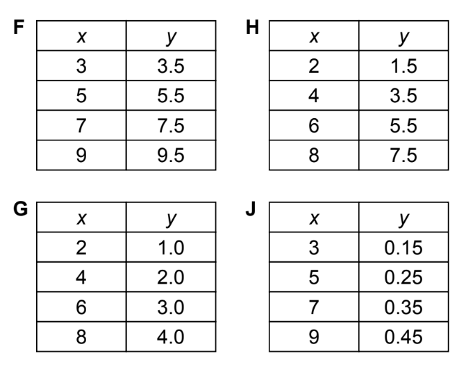 Which table contains only x-values and y-values that make the equation y = 0.5x true?