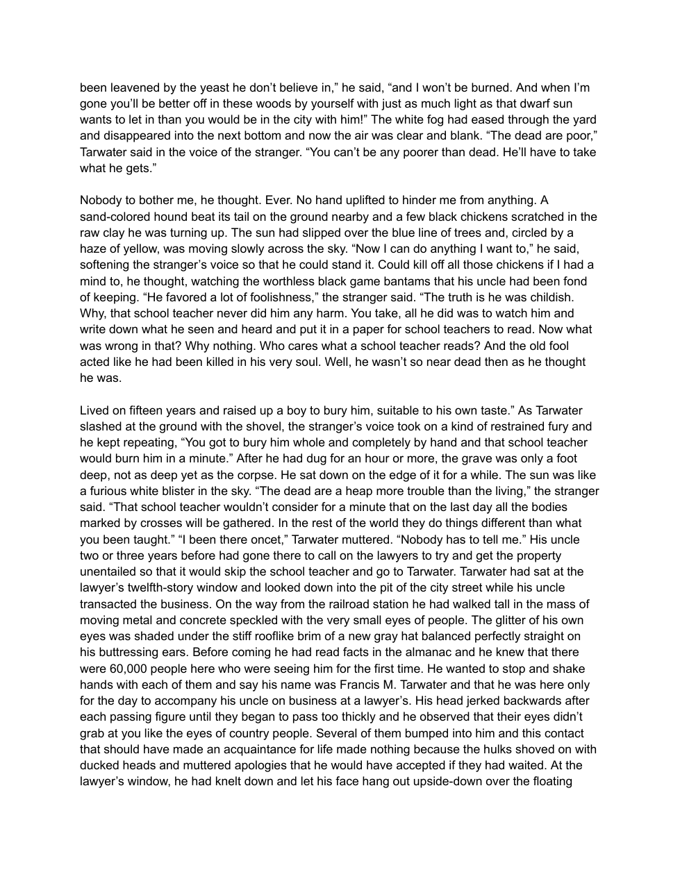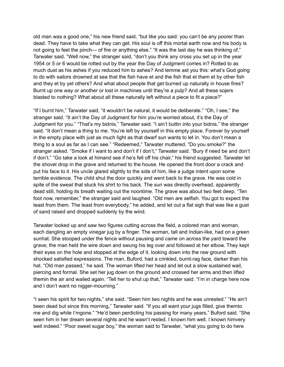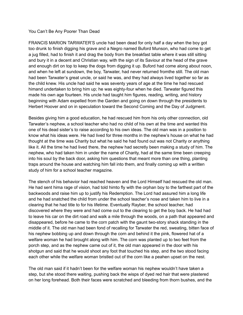 What does Tarwater mean by 'you can't be any poorer than dead'?