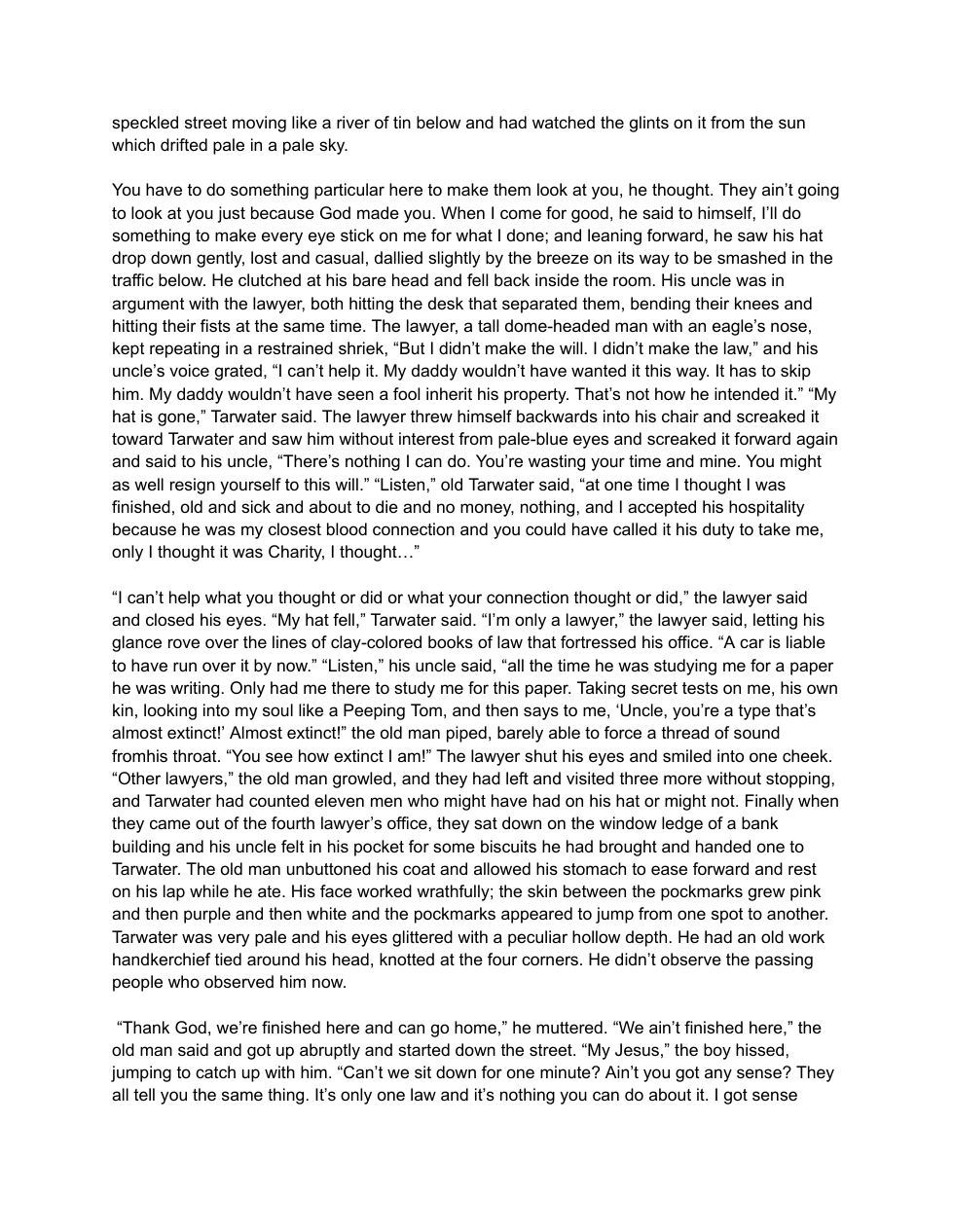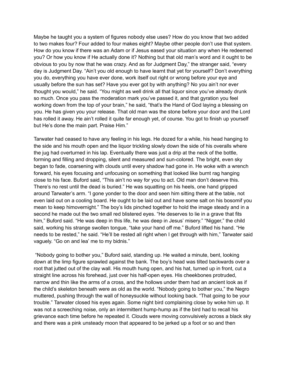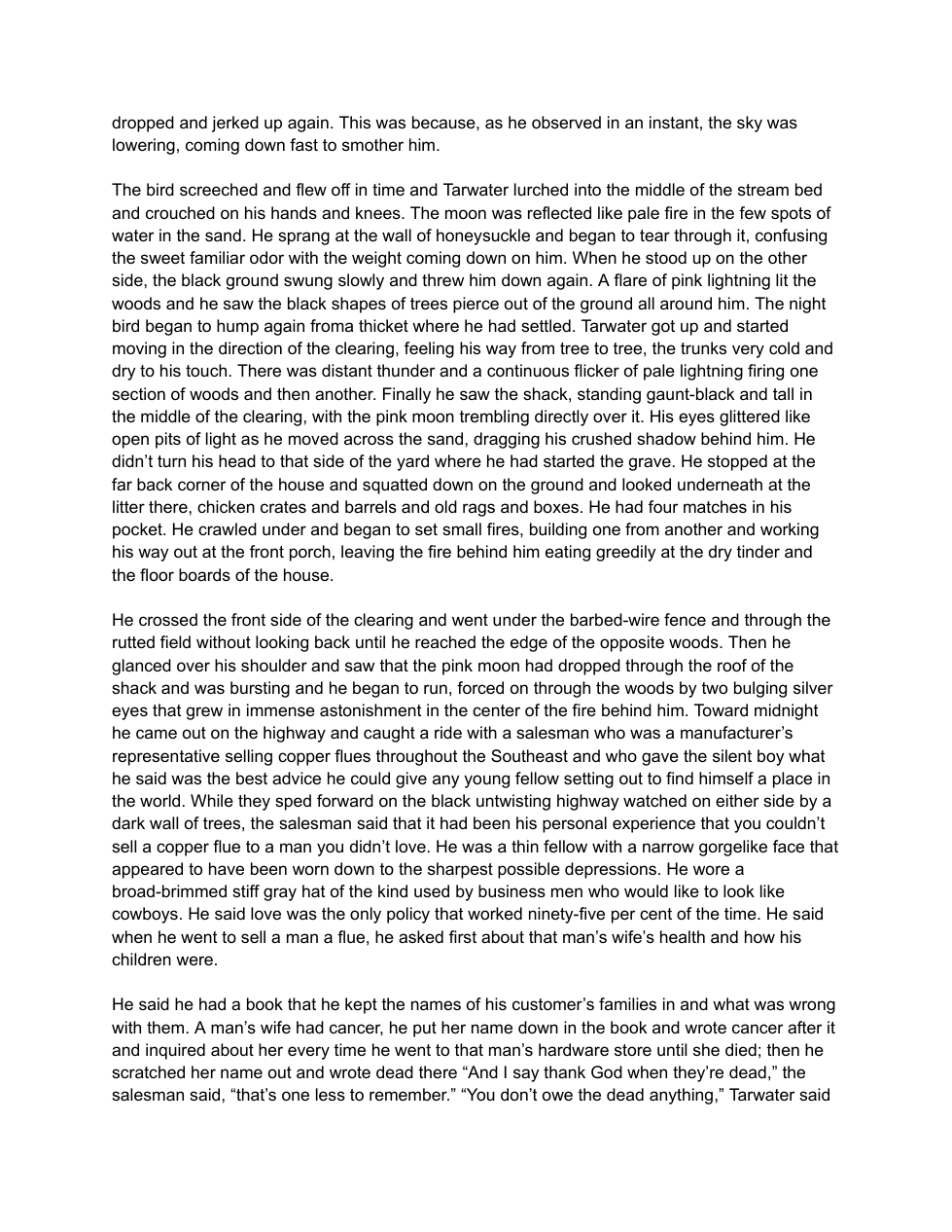 What does Tarwater mean by 'you can't be any poorer than dead'?