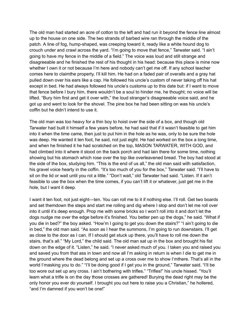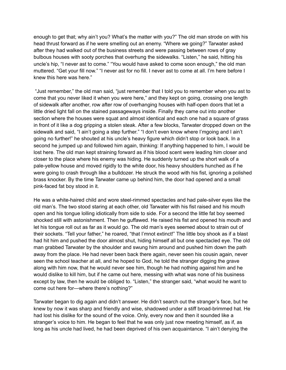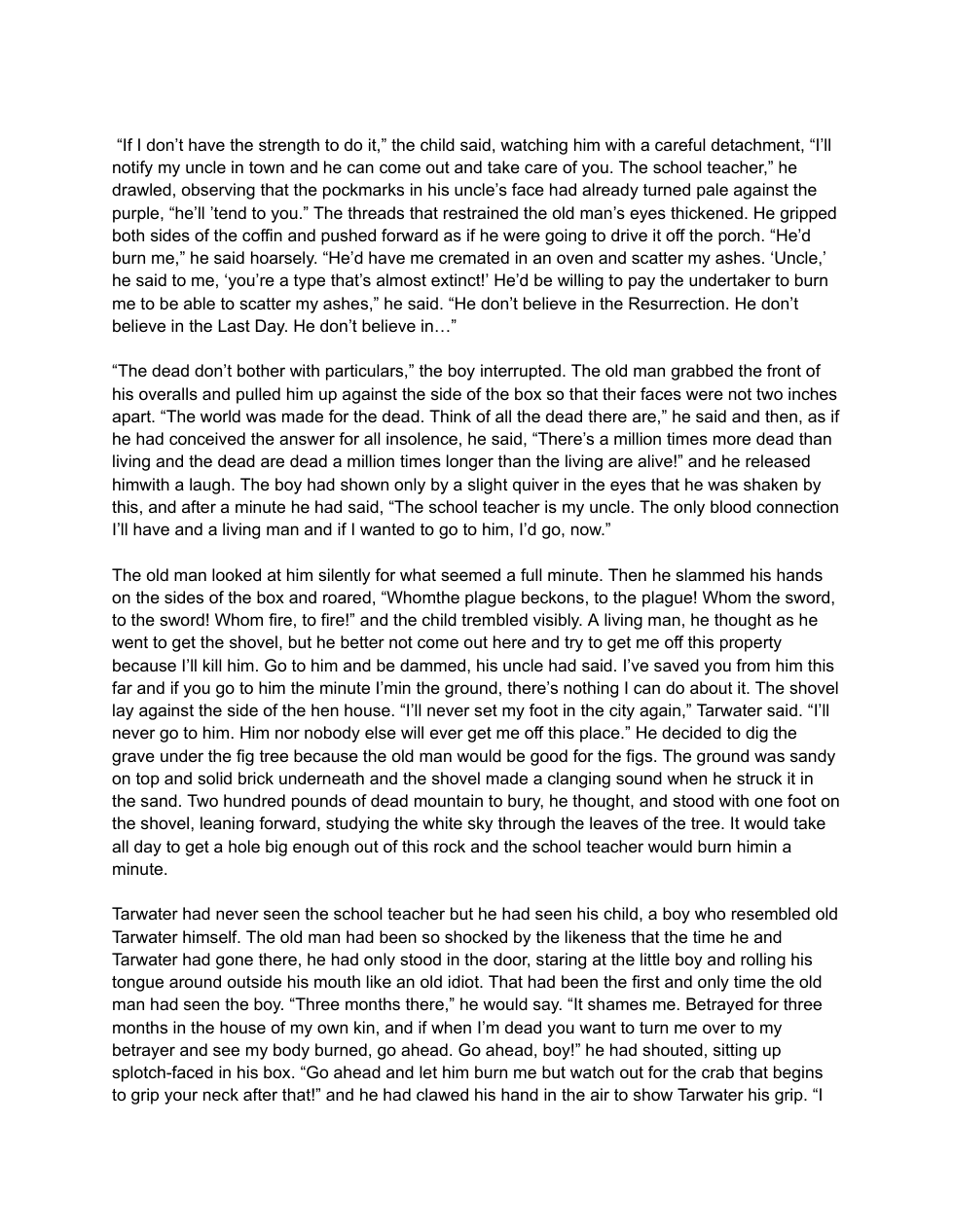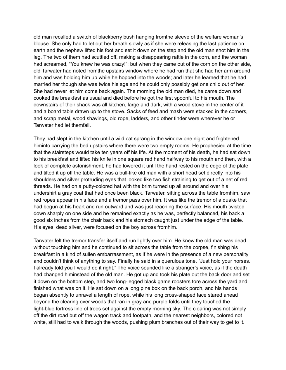 How does Tarwater's relationship with his uncle shape his understanding of mortality?