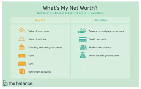 Many people think that being wealthy means you have a lot of stuff; however, it turns out that what you own is only part of the equation for determining your net worth. Review this infographic to see how wealth or net worth (often used as synonyms) is calculated. Then answer the questions below.