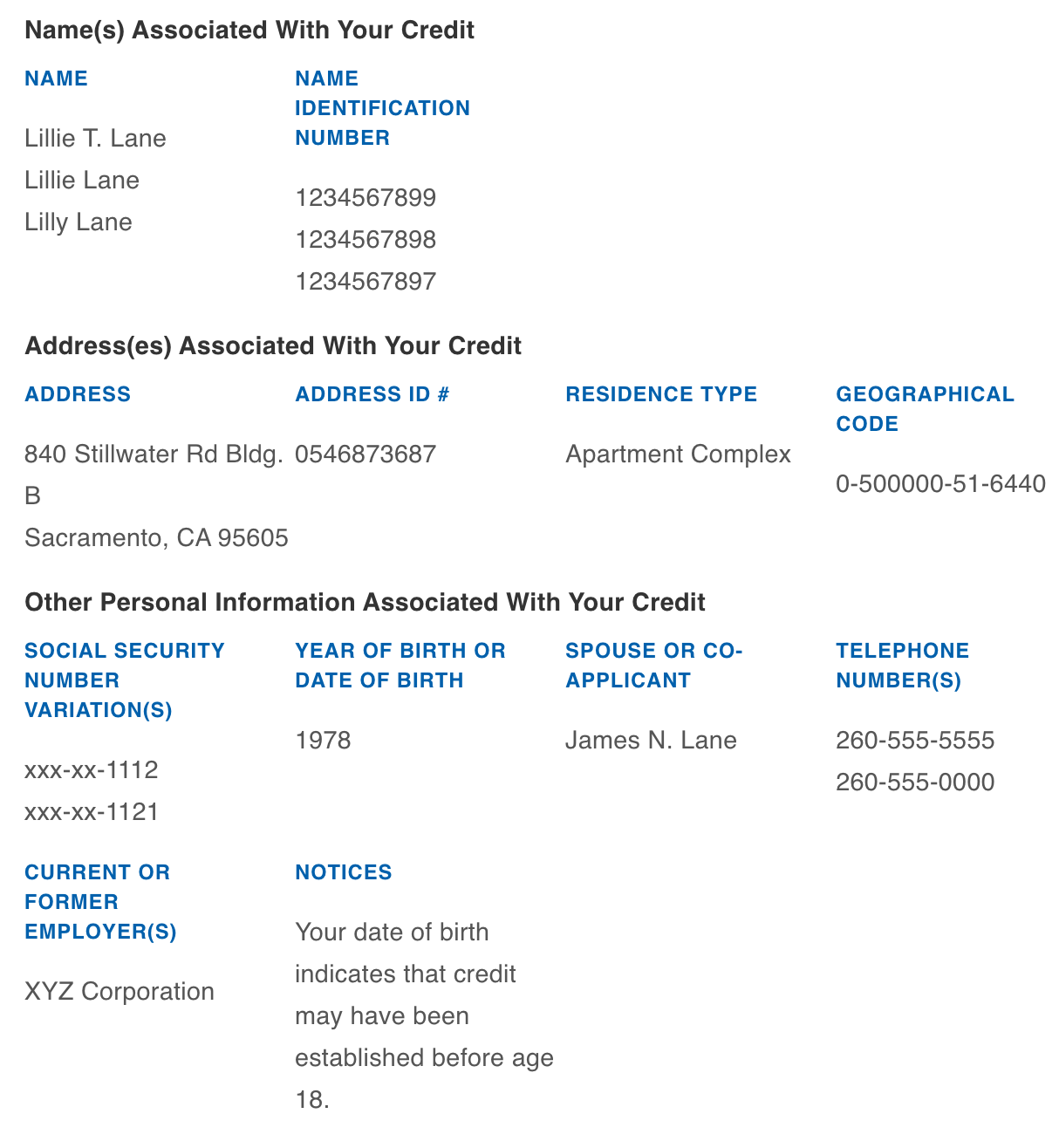 1. This is the credit report for how many people?