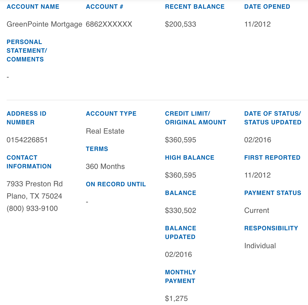 The following options are all included in your credit report trade lines except…